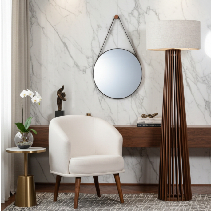 Espelho Decorativo Adnet Redondo Suspenso com Alça de Couro – Estilo Moderno