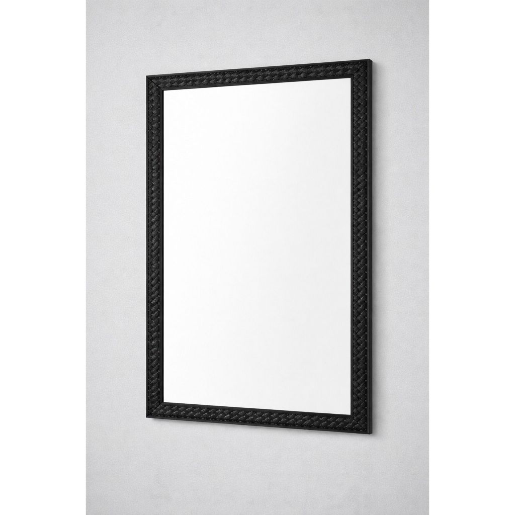 Espelho Decorativo De Parede Com Moldura Madeira 34Cm X 55Cm, Preto, Bege, Banco