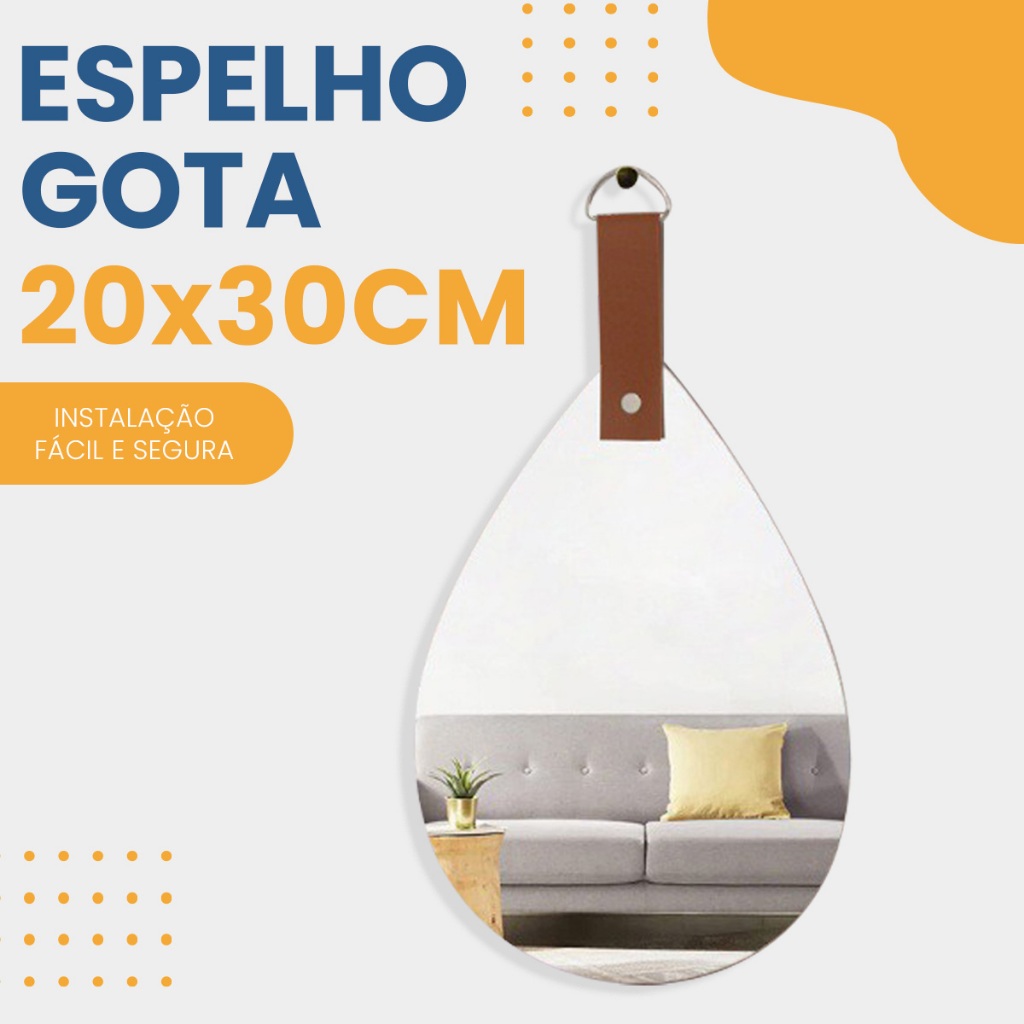 🪞 Espelho Decorativo com Alça de Couro – Vários Formatos e Tamanhos Transforme sua decoração com espelhos modernos, sofisticados e fáceis de instalar! Disponíveis em diferentes formatos (Circular, Orgânico, Gota e Cápsula) e tamanhos variados, eles são perfeitos para salas, quartos, banheiros, hall de entrada e qualquer ambiente que mereça mais charme e amplitude. ✅ Design Exclusivo – Espelhos em formatos modernos para valorizar a decoração. ✅ Alça em Couro Sintético – Acabamento elegante e resistente. ✅ Instalação Fácil e Segura – Basta pendurar no suporte. ✅ Versatilidade – Combina com diferentes estilos de ambiente. 📏 Tamanhos disponíveis: Circular: 30x30cm | 40x40cm | 50x50cm | 60x60cm Orgânico: 20x30cm | 24x30cm Gota: 20x30cm (modelos diferentes) Cápsula: 15x30cm ✨ Dica de decoração: Use mais de um modelo na mesma parede e crie composições modernas e sofisticadas! 📦 Conteúdo da embalagem: 1 Espelho Decorativo com alça de couro Argola para instalação conforme foto (não acompanha parafuso)