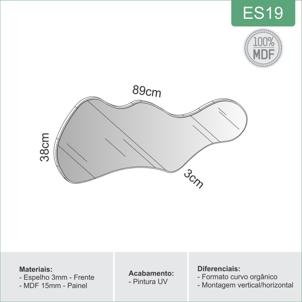 Dimensões: - Altura: 89,00 cm - Largura: 38,00 cm - Profundidade: 3,00 cm - Peso: 4,000 kg Descrição: O(a) Espelho Decorativo Orgânico 90cm Preto Fosco Es19 - Dalla Costa é produzido em MDF e Espelho na escala de brilho Fosco, e possui um grau de dificuldade de montagem: Não Possui Montagem. Seu revestimento/acabamento é: Pintura UV. Infelizmente a Loja não oferece serviço de montagem, deixamos essa informação bem clara em todas as nossas páginas de produto. Onde especificamos que os móveis chegarão desmontados, e que a montagem fica por conta do cliente. Como não oferecemos esse serviço não embutimos o mesmo no preço dos produtos, ou seja, maior economia para você! Todos os nossos móveis também acompanham o manual de montagem, e caso você queira, pode realizar a montagem você mesmo, sempre especificamos os graus de montagem dos produtos. Nos casos de grau baixo e médio, com pouco ou nenhum conhecimento, você mesmo pode efetuar a montagem, e fazer essa economia. Apenas nos graus de montagem alto, recomendamos a contratação de um montador com experiência, visto que são montagens mais complicadas. A montagem é feita com Não Possui Montagem.. Este móvel é indicado para que seja utilizado no(a) Sala de Jantar, dando um toque especial no cômodo de sua casa. Para que você mantenha seu produto sempre em ótimo estado, recomendamos que use apenas um pano seco ou levemente umedecido, sem o uso de quaisquer produtos abrasivos. A Loja garante aos clientes, 90 dias de garantia nos produtos, porém, recomendamos que entre em contato com o fornecedor/marca do produto, pois o mesmo(a), pode garantir um prazo maior de garantia. Lembrando ainda que: quaisquer objetos decorativos que aparecem nas imagens, não acompanham o produto. Características: - Possui Estampa?: Não - Possui Pintura?: Não - Forma de Venda: Unitário - Material da Estrutura: 100% MDF - Necessita de Fixação na Parede?: Sim - Ambiente para Uso?: Decoração de Ambientes - Garantia: 90 Dias - Recomendação de Manutenção: Usar pano seco ou levemente umedecido, não usar quaisquer produtos abrasivos. - Observações: Objetos decorativos que aparecem nas imagens, não acompanham o produto. - Local(is) Indicado(s): Salas e Quartos - Possui Iluminação?: Não - Tipo de Espelho: De Parede - Tipo de Instalação: Parafuso - Formato do Espelho?: Orgânico - Possui Moldura?: Sim - Tamanho do Espelho: 30-43