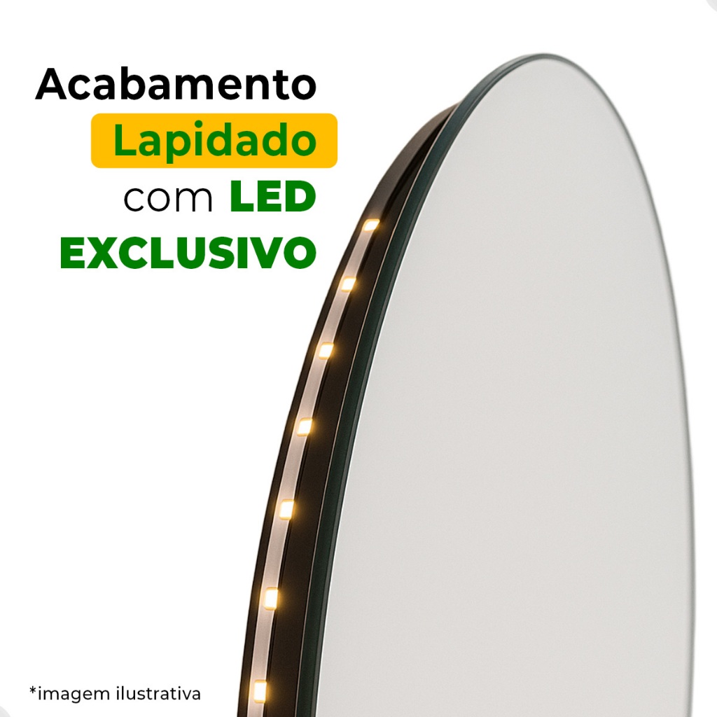 Espelho Decorativo Redondo para Escritório Sala Quarto Banheiro com Led 60cm + Suporte