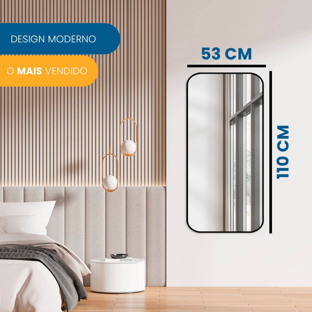 Espelho Decorativo Retangular 53x110cm com Bordas Arredondadas – Moldura Caramelo