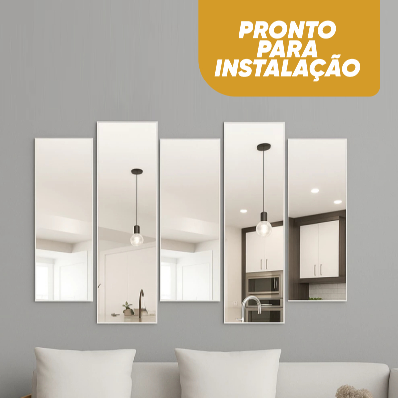 Espelho Decorativo Retangular Kit 5 Peças Vidro Cristal Reflete IMÁGEM Perfeita