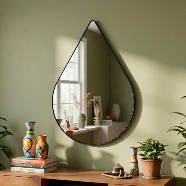 Espelho Decorativo Sala Hall Quarto Orgânico Retrô em Couro 44x64cm C/Suporte - Mod. Gota