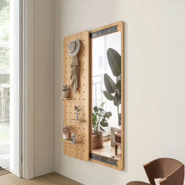 Espelho Deslizante Oculto de Corpo Inteiro para Parede Espelho para Sala de Estar com Prateleira
