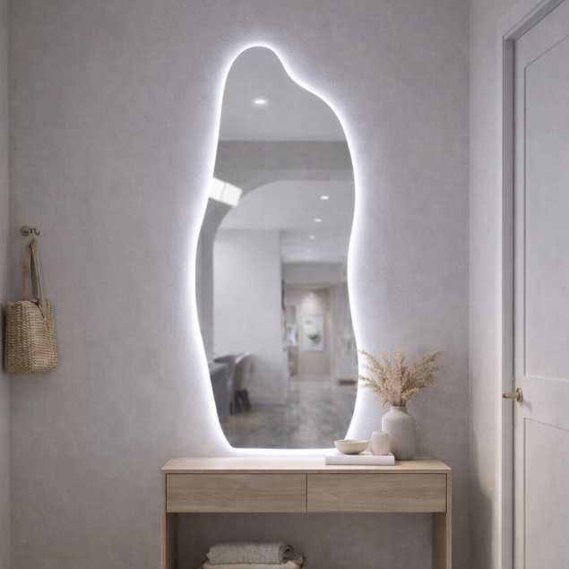 Espelho Flame 50x120 Orgânico Com LED Quente ou Frio Lançamento Corpo Inteiro Decoração Luxo