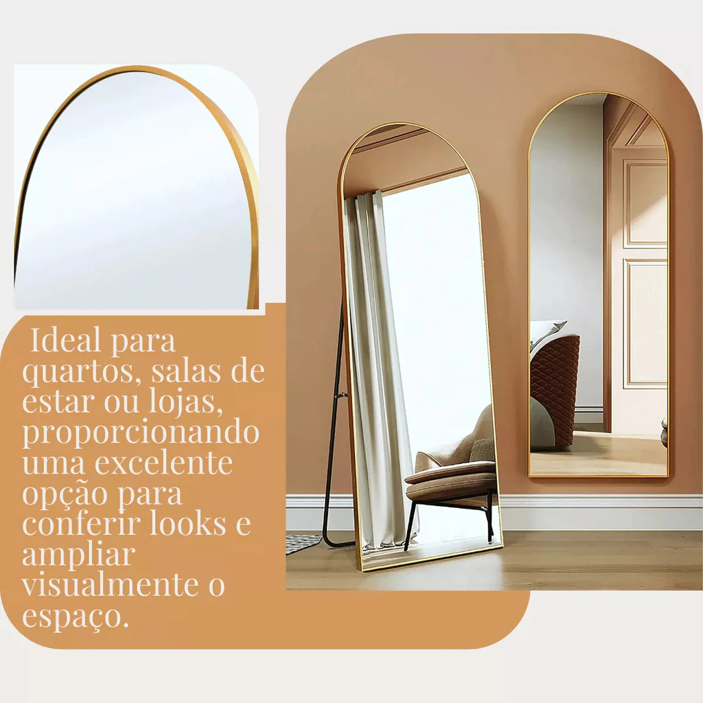 Espelho Grande Base Reta 150x40cm Corpo Inteiro com Moldura Vitral Espelho Grande Vitral 150x40cmO Espelho Grande Vitral 150x40cm é a escolha ideal para quem busca elegância e modernidade na decoração. Com design orgânico e moldura em couro, este espelho de corpo inteiro reflete sofisticação, perfeito para quartos, salas, banheiros ou escritórios. Fabricado com tecnologia de corte CNC e espelho Guardian de 3mm, possui estrutura reforçada em E.V.A. para maior durabilidade. Versátil, pode ser apoiado no chão com suporte ou fixado na parede. Disponível nas cores Preto, Branco ou Dourado (selecione sua preferência nas variações do produto). Características do Espelho Grande Vitral 150x40cm: - Design Moderno: Formato orgânico com moldura com 3cm de profundidade. - Versatilidade: Pode ser usado no chão com suporte ou pendurado na parede (acessórios de fixação não inclusos). - Durabilidade: Estrutura reforçada em E.V.A. e espelho Guardian de alta qualidade. - Amplitude Visual: Aumenta a sensação de espaço e luminosidade em qualquer ambiente. - Embalagem Segura: Desenvolvida para transporte seguro, garantindo entrega sem danos. - Itens na Caixa: 1x Espelho Vitral 150x40cm com Moldura, 1x Suporte para Chão. Especificações Técnicas do Espelho Grande Vitral 150x40cm: - Modelo: Vitral - Espelho: Guardian, 3mm de espessura - Moldura: 3cm de profundidade - Medidas: 40cm (largura) x 150cm (altura) - Material da Estrutura: E.V.A. reforçado - Cores: Preto, Branco ou Dourado (selecione nas variações, conforme estoque) - Peso: Aprox. 5kg Vantagens do Produto: - Escolha a cor desejada nas variações: Preto, Branco ou Dourado. - Pronta entrega com despacho rápido. - Garantia de 90 dias contra defeitos de fabricação (manchas no espelho, manchas no couro ou distorção de imagem). - Estoque limitado – garanta já o seu!
