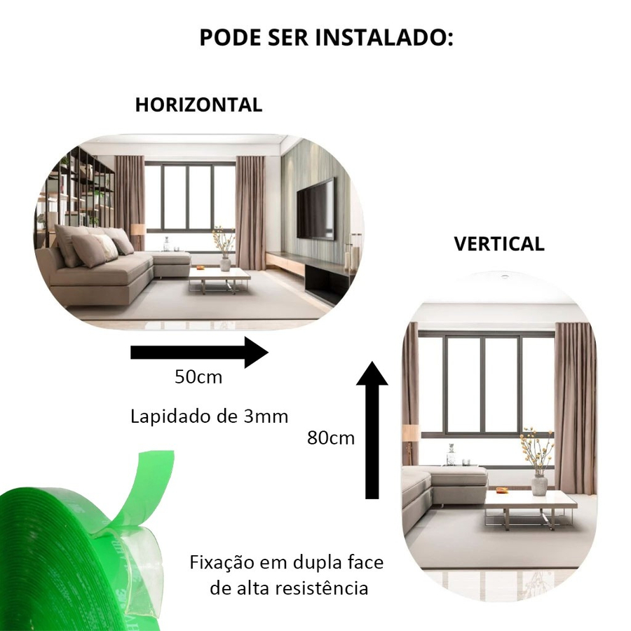 Detalhes do espelho: -Espessura de 3mm para durabilidade e qualidade excepcional. -Fabricados com espelhos orgânicos livres de metais pesados, garantindo segurança para a saúde e o meio ambiente. -Acabamento lapidado nas bordas para um visual refinado. -O espelho já vem equipado com LED, disponível nas opções de cores branco quente ou branco frio (escolha a sua preferência no momento da compra). Medidas disponíveis: 40x50 cm com e sem led 80x50 cm com e sem led