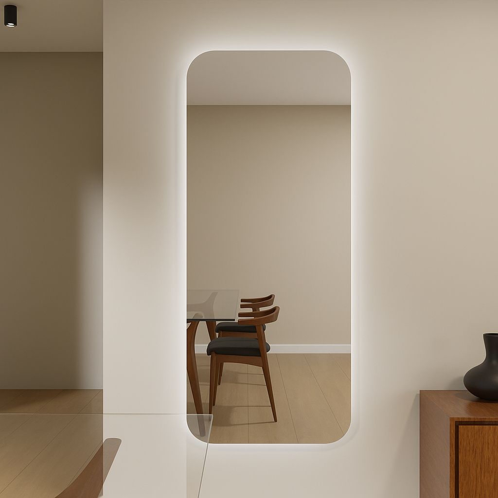 Espelho Grande Retangular Led Quente 3000K Neutro 4000k Frio 6000k Sem Moldura Corpo Inteiro Banheiro Hall Bivolt