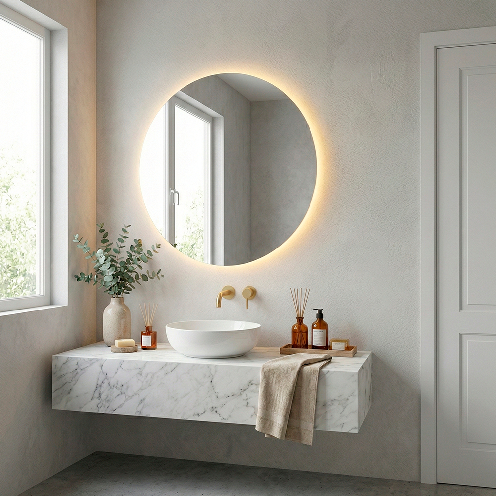 Espelho LED 60cm Redondo Lapidado para Banheiro Sala Quarto Maquiagem com Instalação Fácil