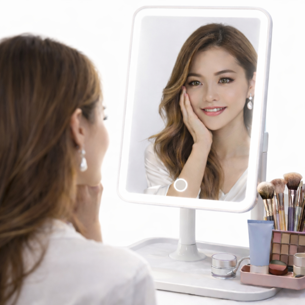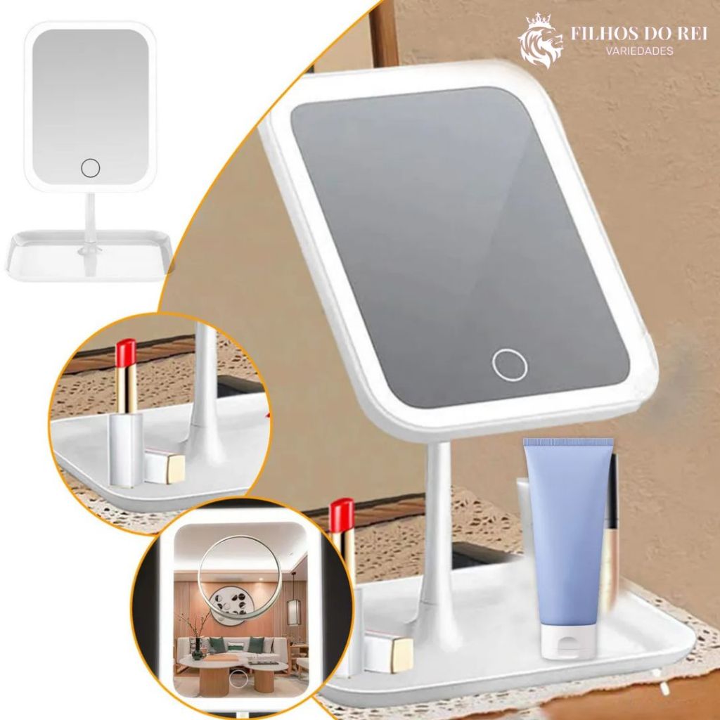 Espelho LED de Mesa com Organizador de Maquiagem - Mirror Makeup O Espelho LED de Mesa com Organizador é o acessório ideal para quem busca praticidade, iluminação perfeita e organização na hora de se maquiar. Com design moderno e elegante, ele se adapta perfeitamente a penteadeiras, mesas de maquiagem ou até mesmo para uso em viagens. Equipado com iluminação LED com 3 tons de luz, o espelho proporciona uma visualização clara e precisa em qualquer ambiente, permitindo ajustar a iluminação entre luz branca, luz quente ou luz natural conforme sua necessidade. Seu espelho de alta qualidade oferece imagem nítida e sem distorções, facilitando a aplicação de maquiagem, cuidados com a pele e outros detalhes do dia a dia. A base possui organizador integrado, ideal para armazenar batons, pincéis, cremes e outros acessórios, mantendo sua mesa sempre organizada. Além disso, o espelho conta com rotação ajustável de até 90°, permitindo encontrar o melhor ângulo para se maquiar com conforto. O funcionamento é recarregável via cabo USB, tornando o uso prático, econômico e fácil de carregar em qualquer lugar. Principais Características ✔ Iluminação LED com 3 modos de luz (branca, quente e natural) ✔ Controle de brilho sensível ao toque ✔ Rotação ajustável até 90° ✔ Entrada USB para recarga ✔ Base organizadora para maquiagem ✔ Design moderno, compacto e portátil ✔ Imagem nítida e sem distorções Especificações Material: Plástico ABS e vidro Cor: Branco Tamanho do produto: 26 × 18,3 cm Tamanho da embalagem: 20 × 20 × 7 cm Peso aproximado: 350 g Alimentação: Recarregável via USB Uso recomendado: Casa, viagem ou escritório Conteúdo da Embalagem 📦 1 Espelho LED (montagem simples – 3 partes) 📦 1 Cabo USB ✨ Perfeito para maquiagem, cuidados com a pele e organização da sua penteadeira.