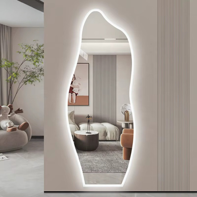 Espelho Orgânico 110X50cm de LED em Forma de Onda 3mm Lapidado de Corpo Inteiro Arte Moderna Sala de Estar/Quarto/Salão