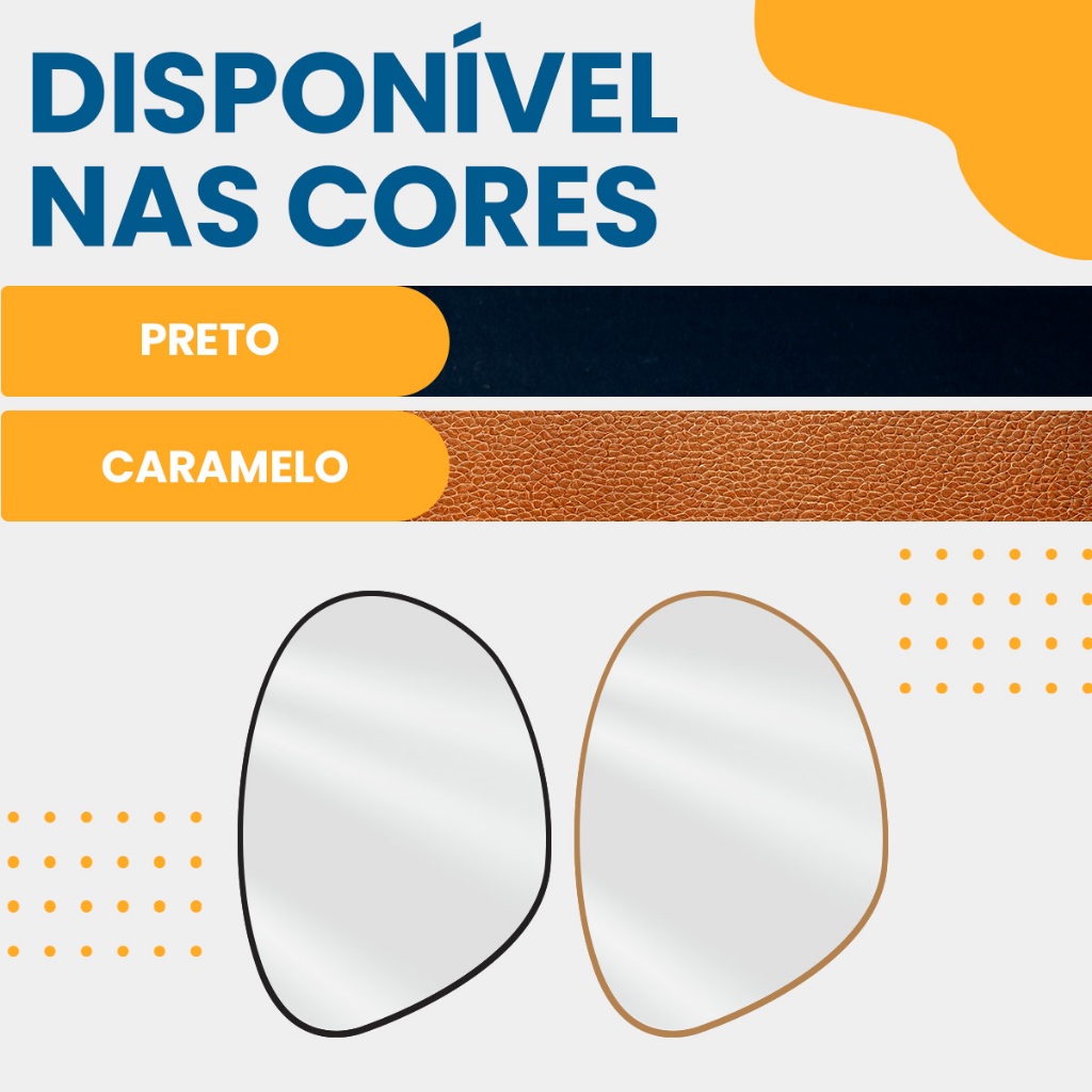 Espelho Orgânico 60x40 Couro + Suporte Banheiro / Sala / Quarto