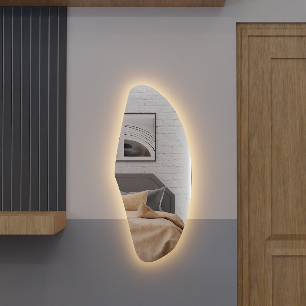 Espelho Organico E23 Com Led Luz Branca e Amarela Corpo Inteiro Sala Quarto Salão