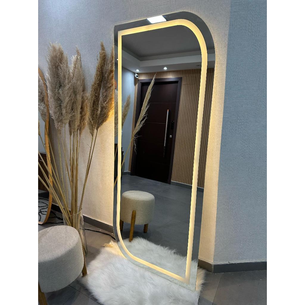 Espelho Orgânico EL24 Corpo Inteiro 170cm x 70cm Polido LED Jateado Luz Branca e Luz Amarela Sala Quarto Banheiro