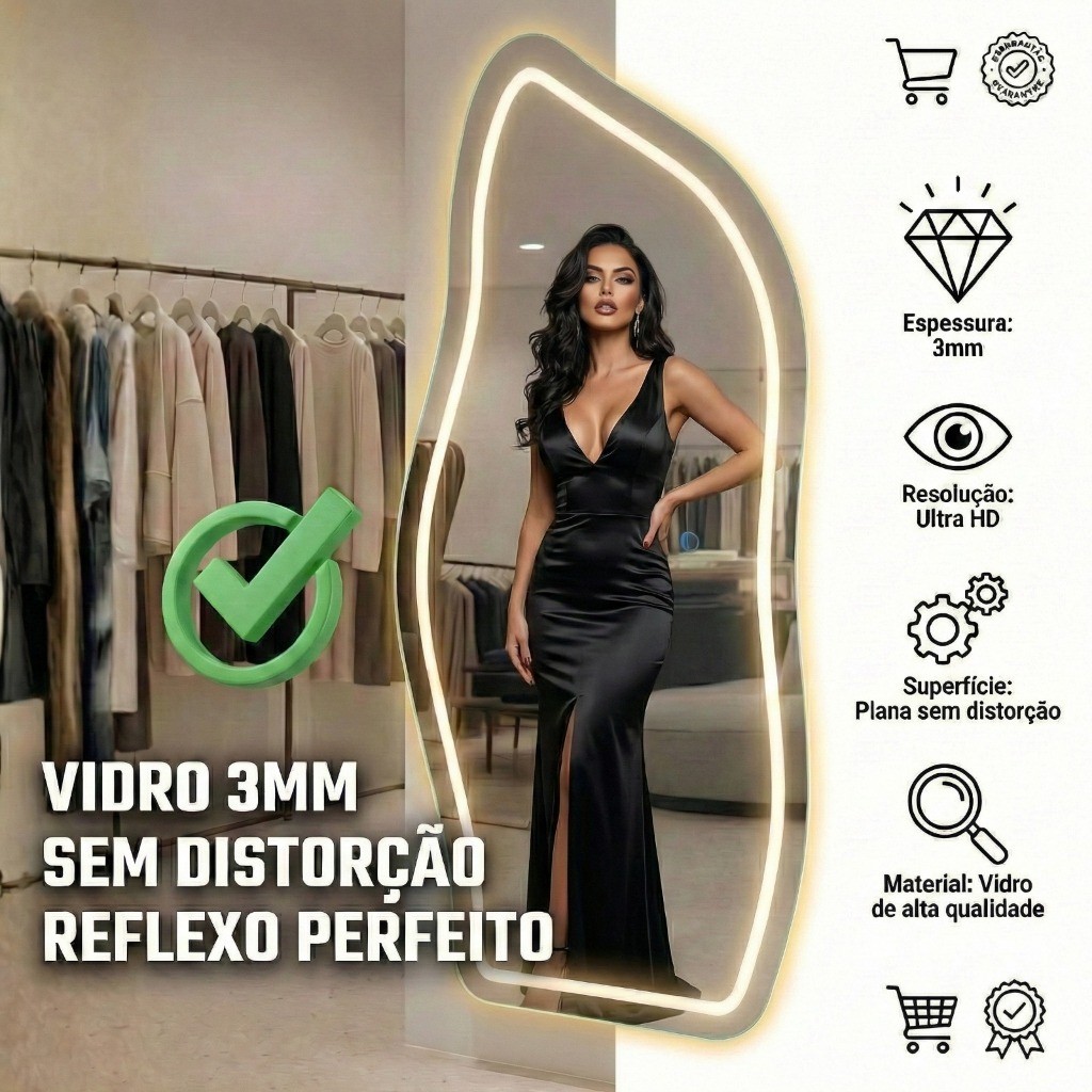 Espelho Orgânico Magnus 170x70cm LED 3 Cores Grande Corpo Inteiro Tendência Pinterest