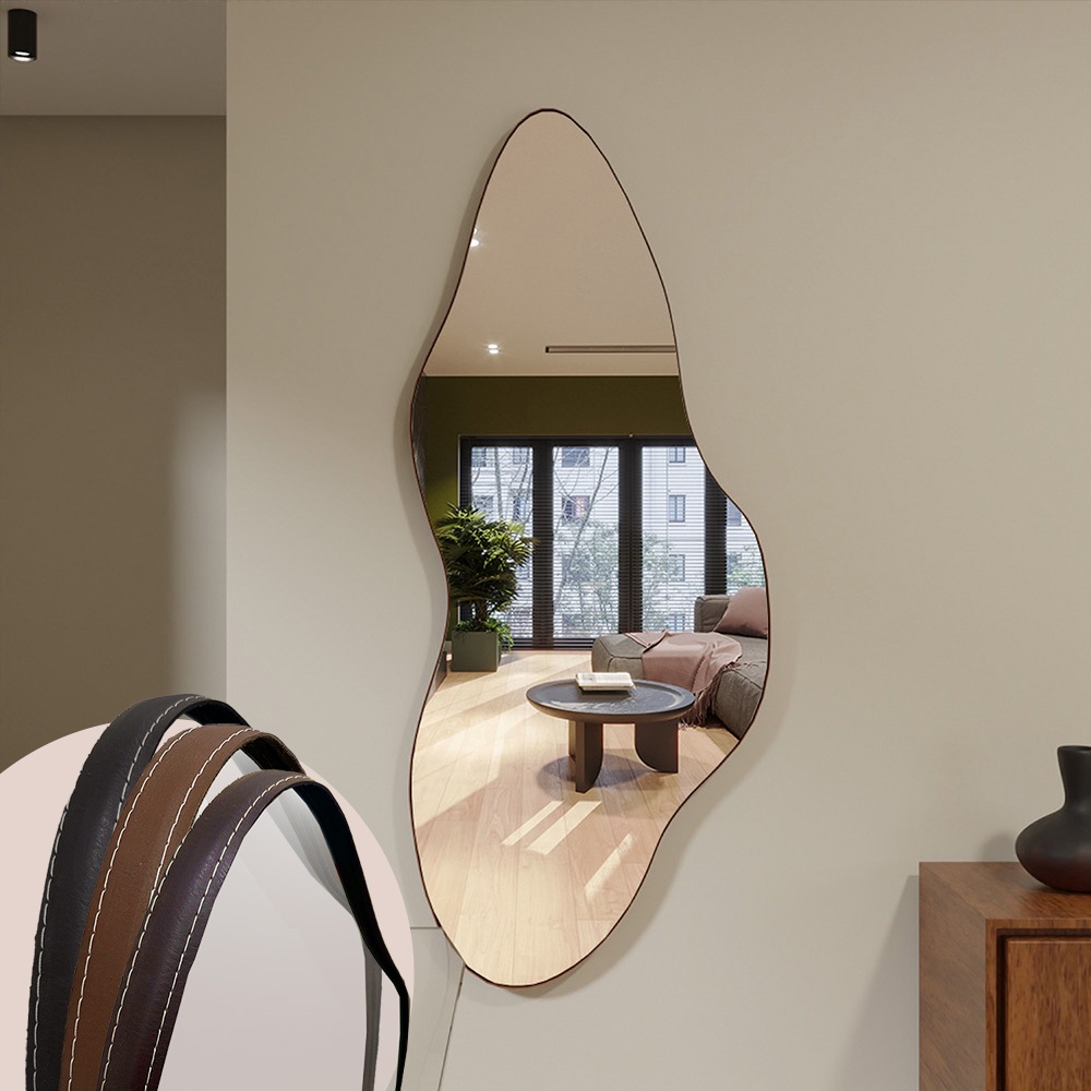 Espelho Orgânico ME04 Moldura Couro 110x50cm 150x60cm 170cmx70cm Corpo Inteiro Quarto Sala Banheiro