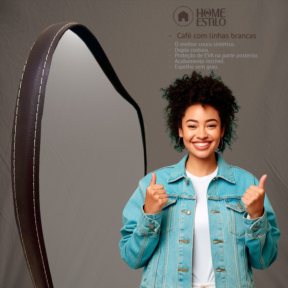 Espelho Orgânico ME24 Moldura Couro 110x50cm 150x60cm 170x70cm Corpo Inteiro Quarto Sala Banheiro