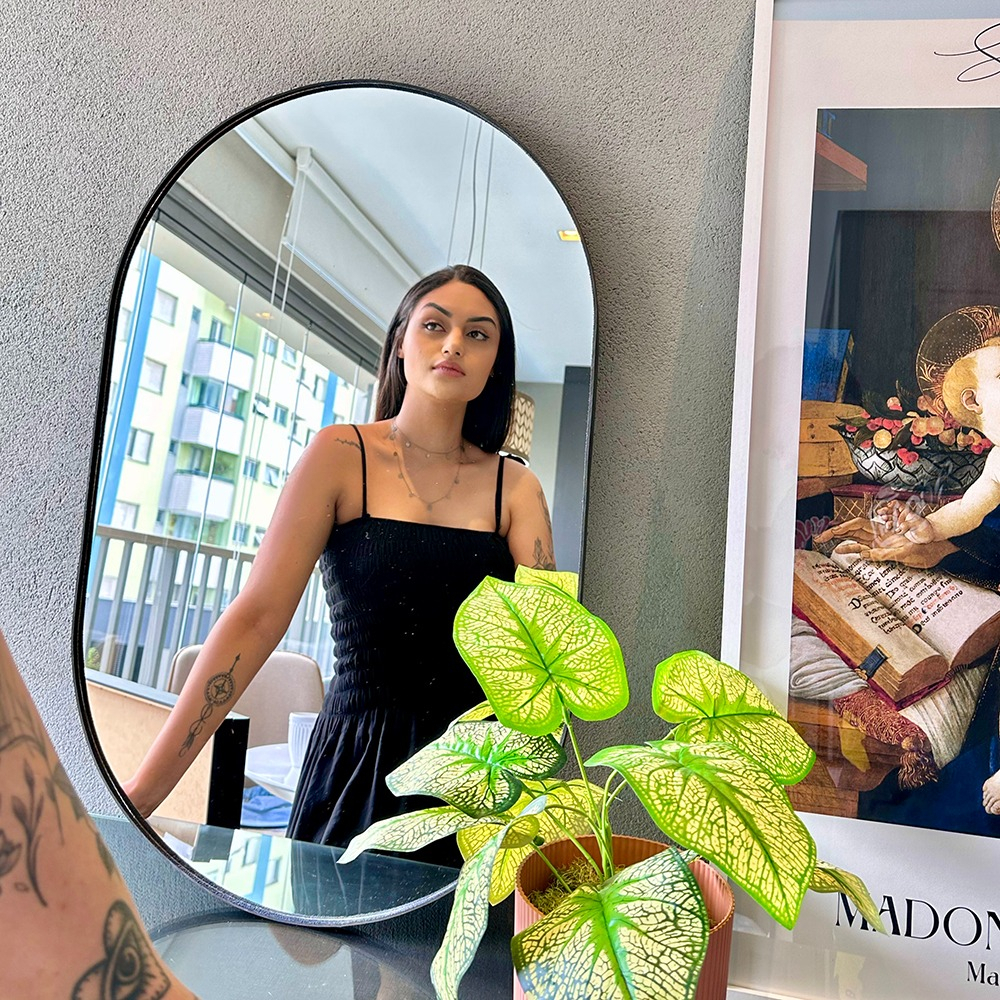 Espelho Orgânico Oval Moldura Em Couro Corpo Inteiro Quarto Sala Banheiro Hall Grande Moderno Luxo