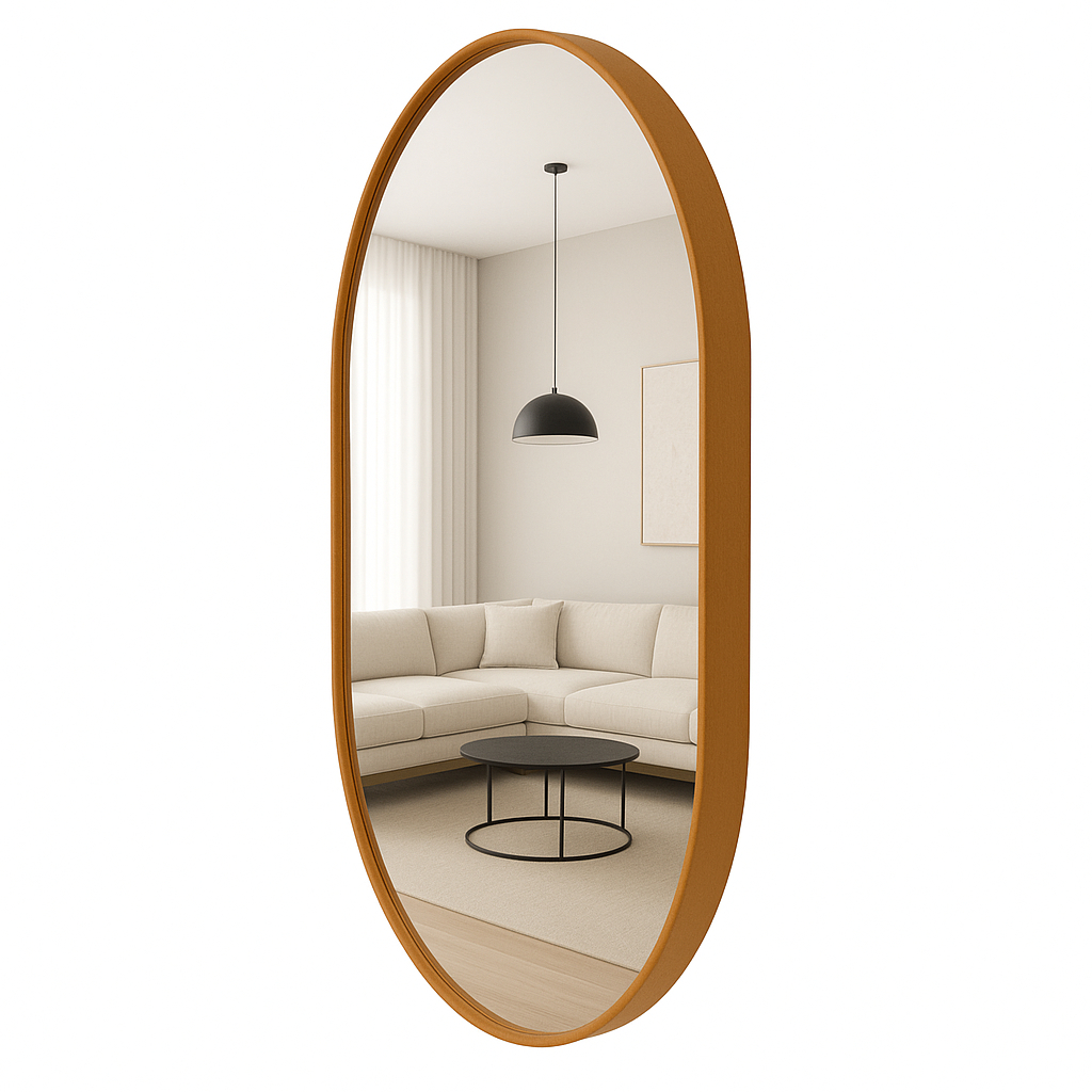 | Espelho Oval 80 cm Grande Com Moldura Borda Couro + Suporte Parede este produto | R$ 53,90 | 55% | 4.5/5 | — |