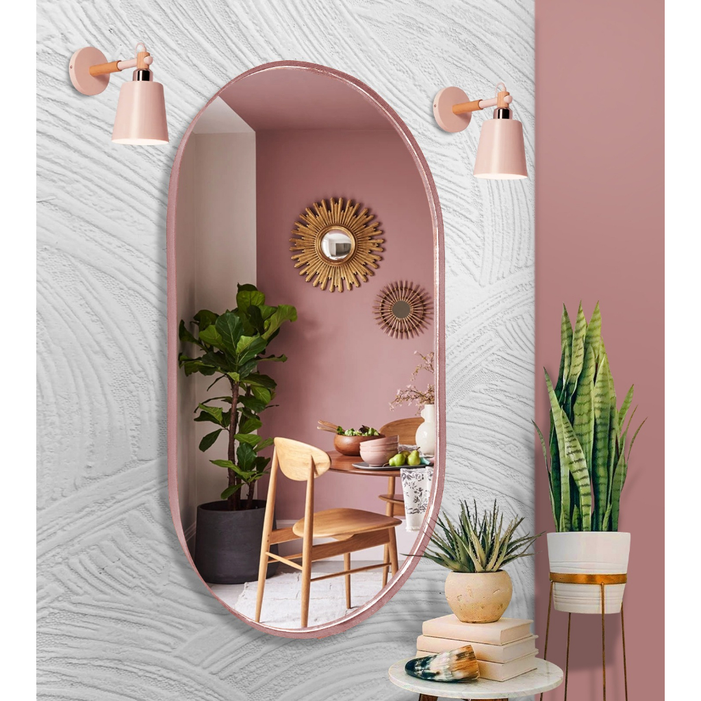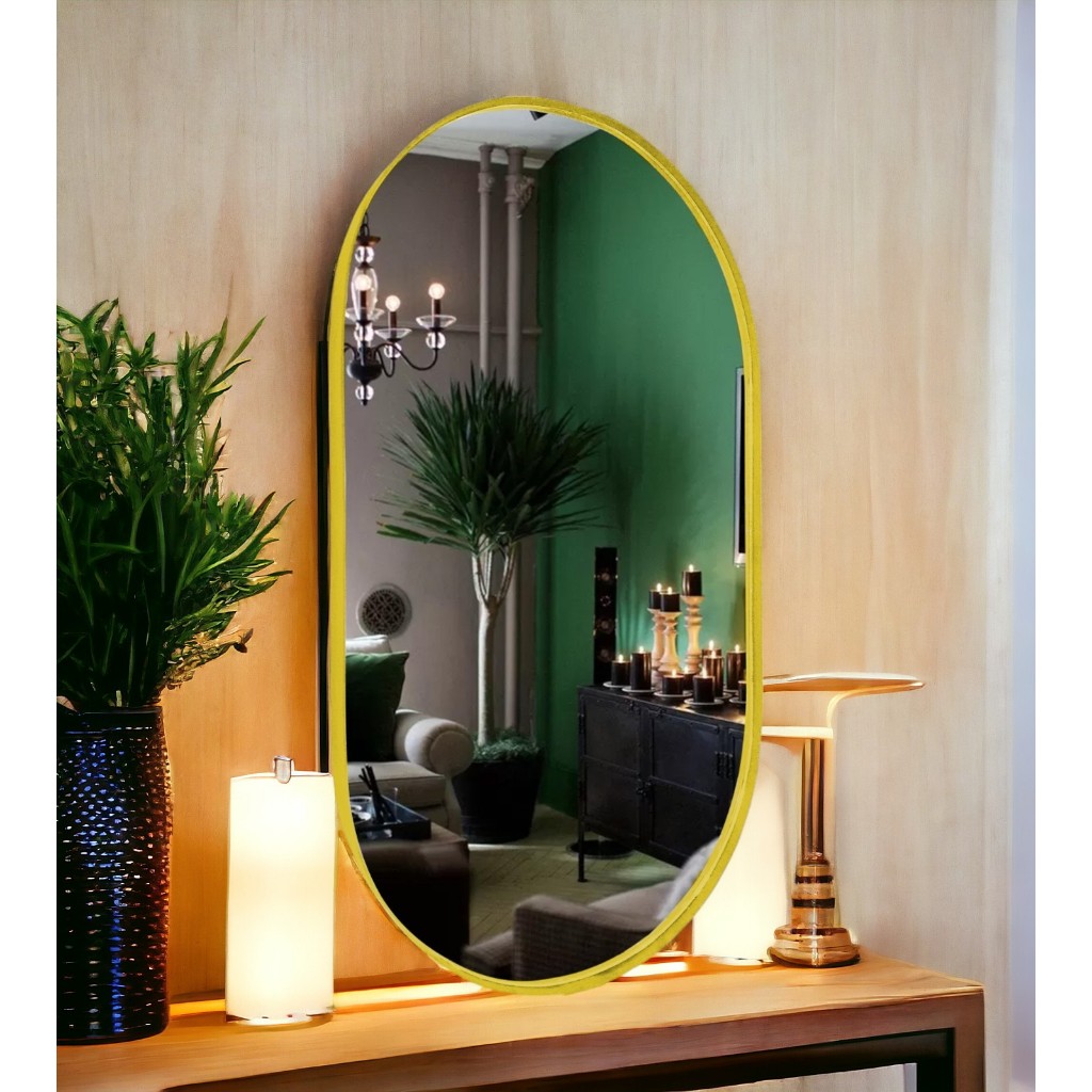 Espelho Oval Corpo Inteiro Com Moldura Couro decoração quarto 76x30