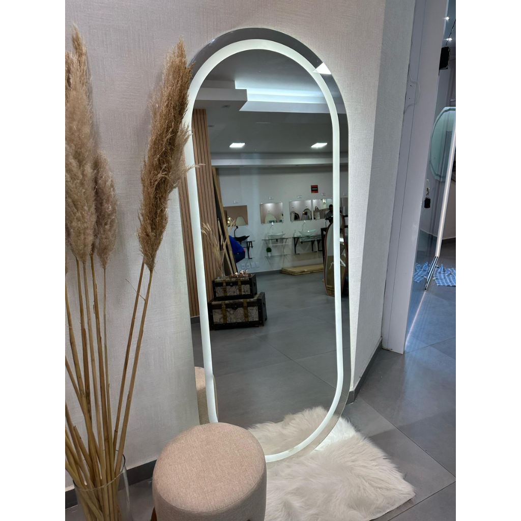 Espelho Oval EL07 Corpo Inteiro 150cm x 60cm Polido LED Jateado Luz Branca e Luz Amarela Sala Quarto Banheiro