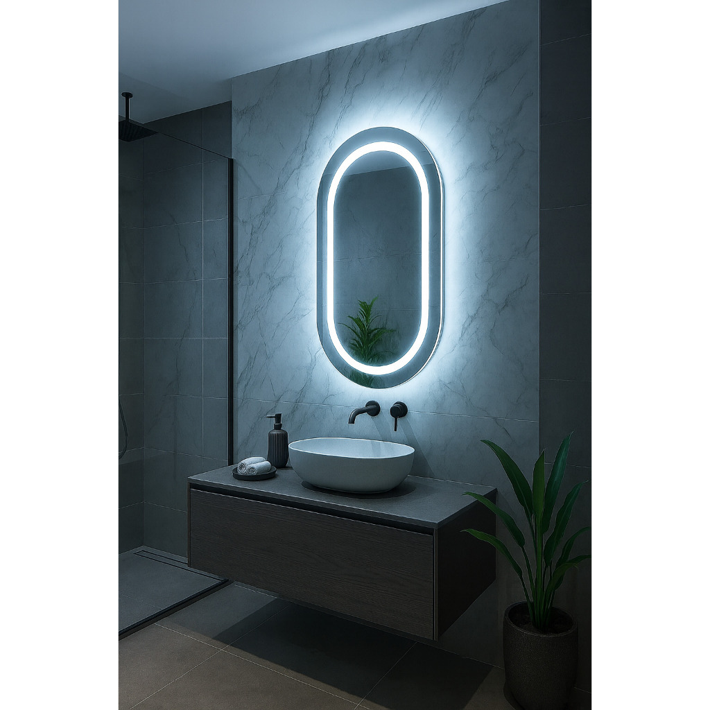 Espelho Oval EL07 Polido com Led Jateado Luz Branca e Amarela Para Quarto Sala Banheiro Salão