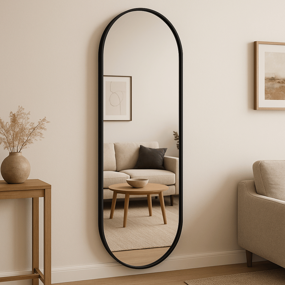 Espelho Oval Lopazzi Grande Corpo Inteiro 150x50cm Com Moldura Alumínio Para Quarto Sala Decorativo