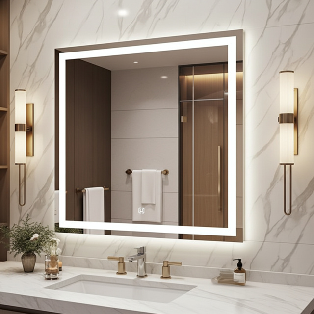Espelho Quadrado Com Iluminação Led Botão Touch Para Camarim Penteadeira Banheiro 90x90 cm