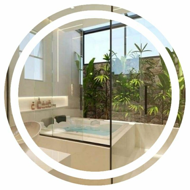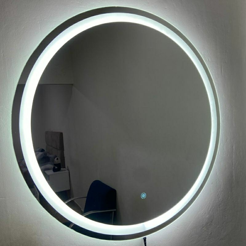 Espelho Redondo 40x40 50x50 60x60 70x70 80x80 90x90 Jateado Iluminação Frontal Led com Botao Touch