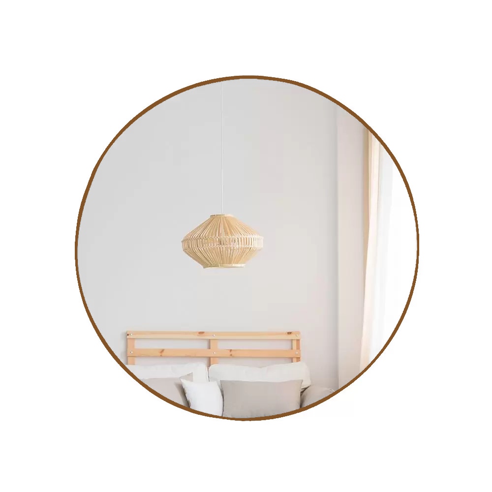 Espelho Redondo 80cm Grande Couro Suporte Sem Alça Para Banheiro Quarto Sala Decorativo