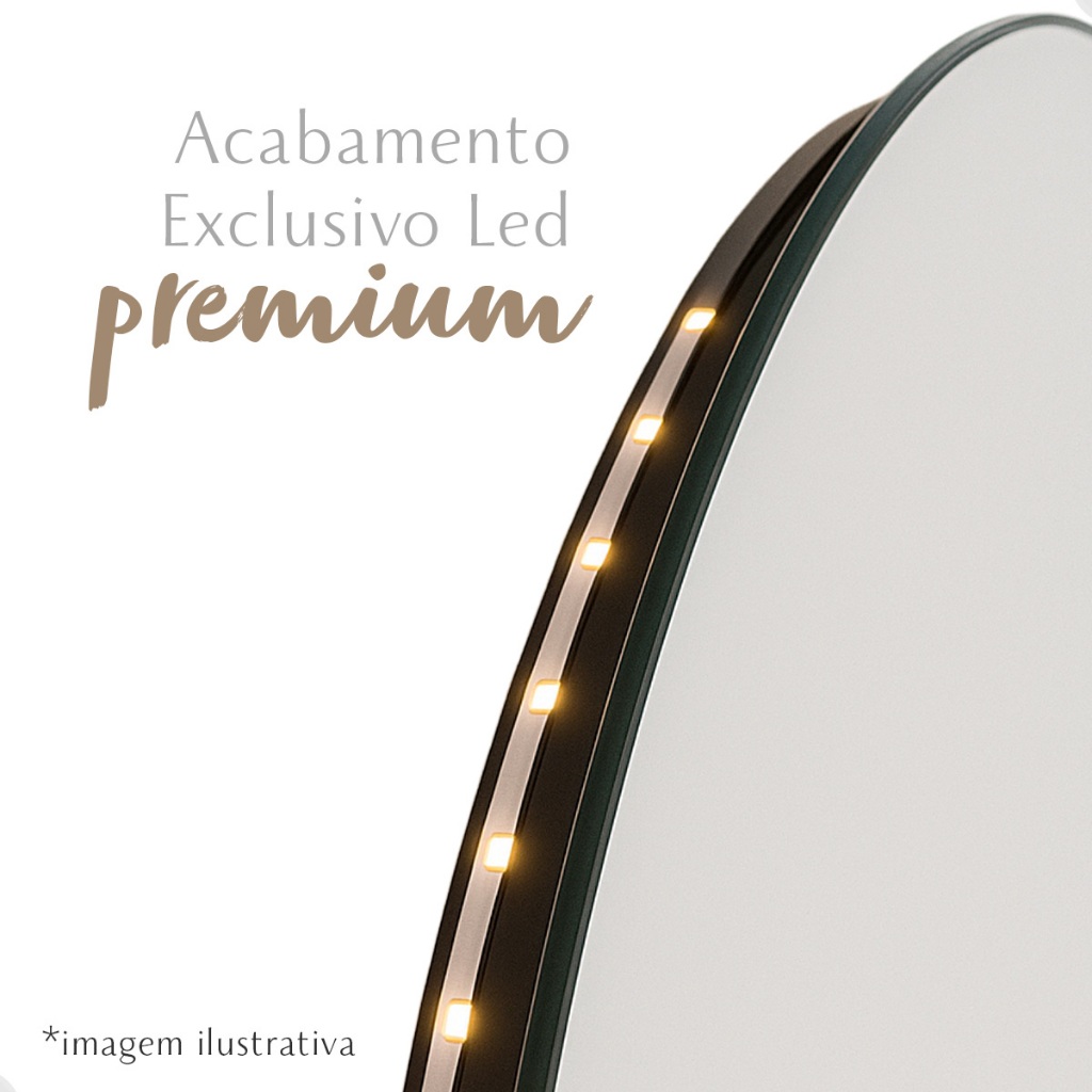 Espelho Redondo com Led 60cm Decorativo para Sala Quarto Banheiro com Suporte de Parede