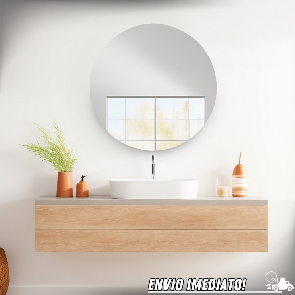 Espelho Redondo de Parede 60cm | Adesivo, Lapidado e Sem Borda - Pronta Entrega