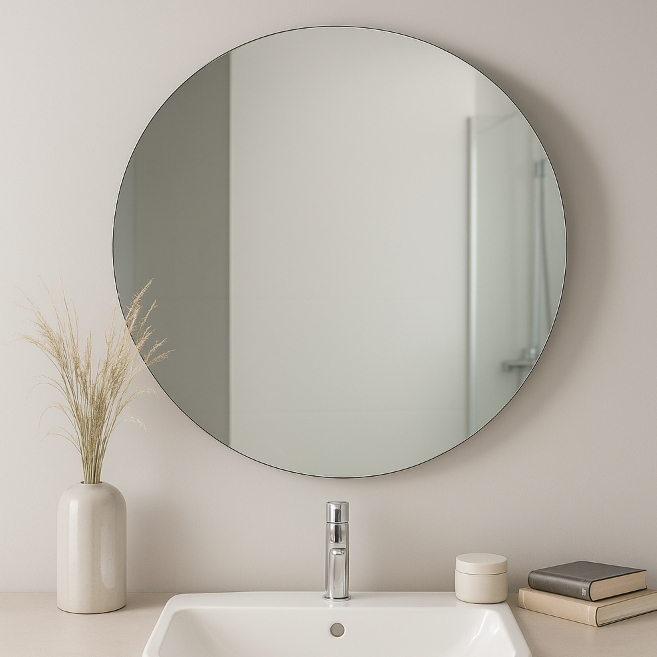 Espelho Redondo De Vidro Lapidado - 60cm X 60cm Decoração Sala Corpo Inteiro