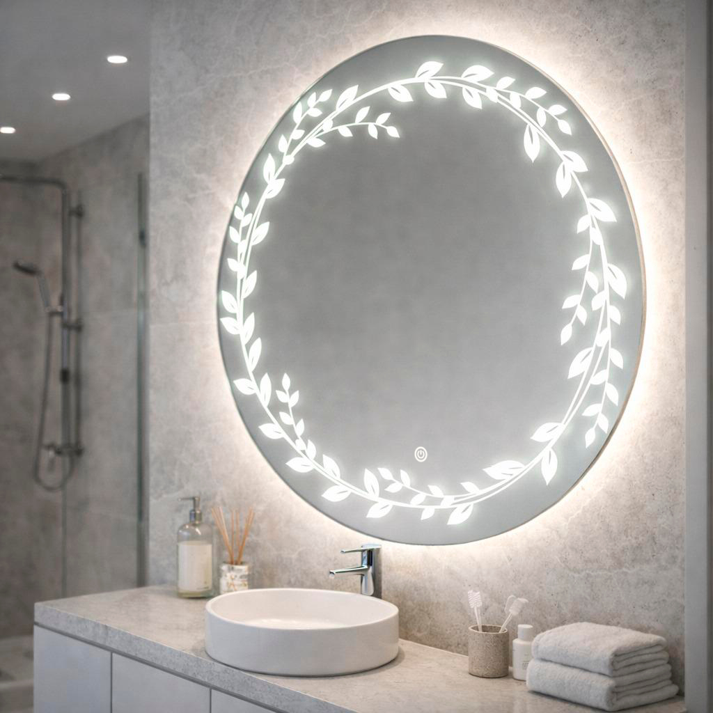 Espelho Redondo Jateado com LED Touch 60cm Bivolt Moderno para Banheiro e Quarto