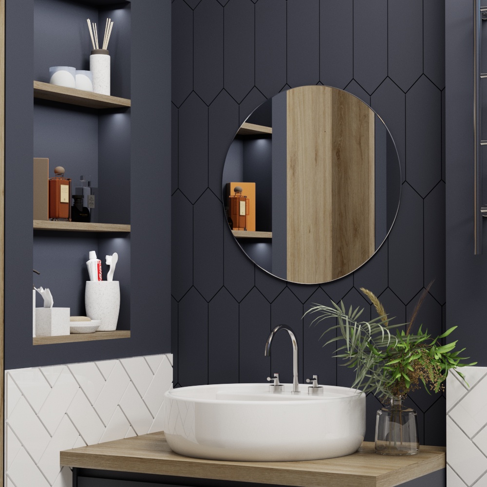 Espelho Redondo Lapidado com Kit de Instalação – Ideal para Banheiro Sala e Quarto