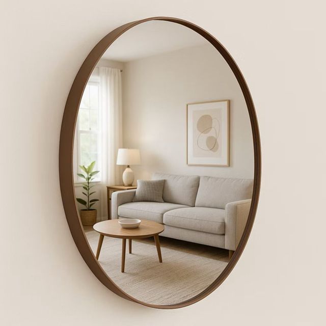 Espelho Redondo Sem Alça com Moldura Couro Ecológico – Sala, Quarto, Banheiro