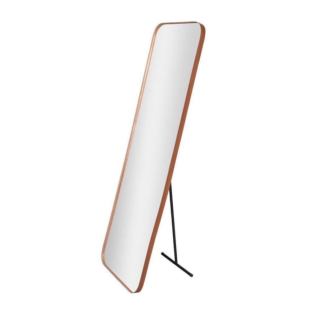 Espelho Retangular 150x50cm Suporte de Chão Corpo Inteiro Couro Orgânico Caramelo