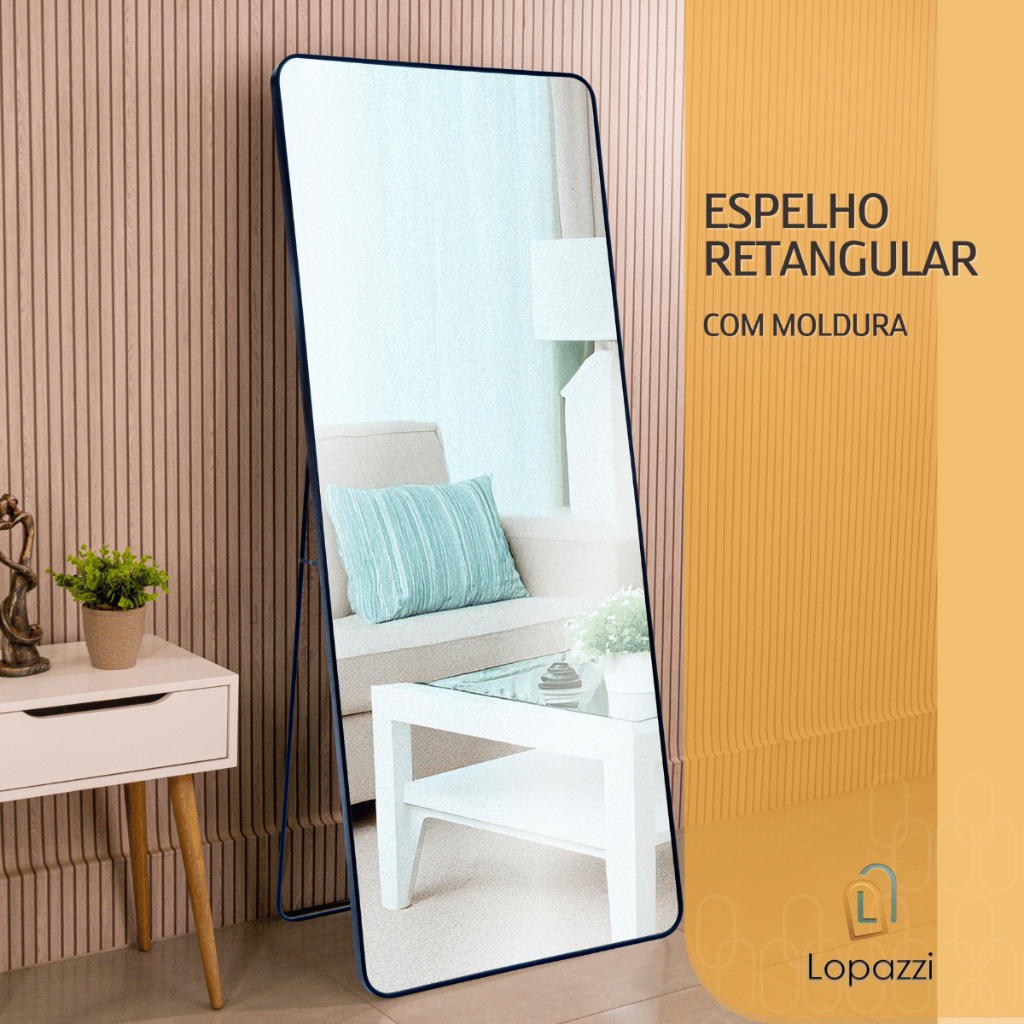 Espelho Retangular Grande Corpo Inteiro 150x60cm Com Moldura Alumínio Para Quarto Sala Decorativo