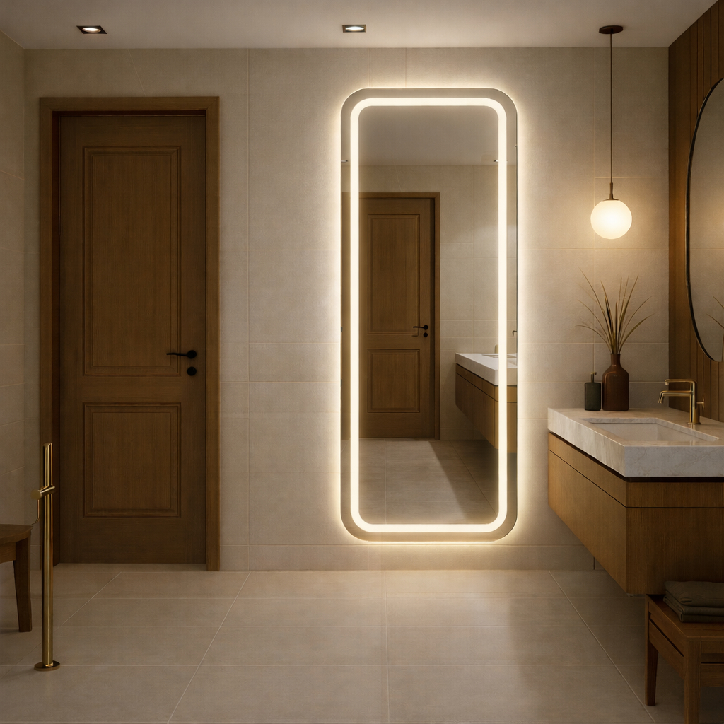 Espelho com LED Jateado Bivolt - Home Estilo Casa e Decoração Transforme seus ambientes com elegância e tecnologia! O Espelho com LED Jateado une design moderno, alta durabilidade e uma iluminação envolvente que valoriza qualquer espaço — do banheiro ao quarto, do hall ao closet. Destaques do Produto Alta proteção contra quebra: Revestido com fundo em MDF, que garante maior resistência e segurança, evitando estilhaços em caso de impacto. LED de alto brilho: Iluminação intensa e uniforme, destacando o design sofisticado e moderno. Design sofisticado: Formato elegante e acabamento lapidado, ideal para quem busca estilo e personalidade na decoração. Beleza funcional: Além de decorar, o espelho amplia e ilumina visualmente o ambiente. Especificações Técnicas Tamanhos:150x40cm/170x70cm/180x60cm/200x70cm/ 210 cm (altura) × 60 cm (largura) Espessura do vidro: 3 mm Iluminação: LED de alto brilho com 240 lumens por metro. Voltagem: Bivolt automático (127 V / 220 V) Fonte: Acompanha fonte bivolt (fio da tomada com aproximadamente 100 cm) Opções de Temperatura de Cor Branco Frio: 6000 K Branco Neutro: 4000 K Branco Quente: 3000 K Diferenciais Fácil instalação (suporte já fixado na parte traseira) Alta durabilidade e resistência Acabamento polido e lapidado de alto padrão Imagem sem distorção Pronto para uso — LED já colado no espelho Fácil limpeza e manutenção Ambientes Indicados Os Espelhos Home Estilo Casa e Decoração São Perfeito para banheiros, quartos, closets, halls, penteadeiras, salas de estar, salas de jantar, camarins e salões. Com seu visual refinado e luz suave, o espelho traz aconchego e sofisticação a qualquer ambiente. Instalação não inclusa — de responsabilidade do cliente. Imagens meramente ilustrativas Home Estilo Casa e Decoração-170X50J04SLIM Espelho de Luxo LED 170cm Bivolt 3000K Quente Acabamento Polido Iluminado para Sala Quarto e Camarim Design Luxo Sala Quarto Home Estilo Casa e Decoração