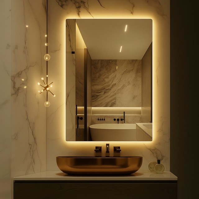 Espelho Retangular VERTICAL Led Fundo Luz Indireta Tamanhos 60x40 Cm a 90x70 Cm