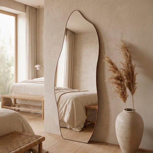 Espelho Retrô Corpo Inteiro Orgânico 170x70 Couro Mod. Flame