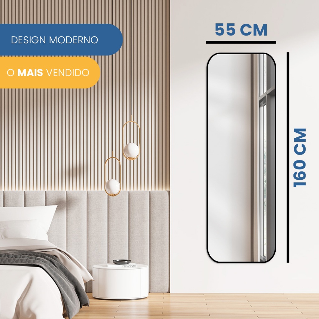 Espelho Retrô Retangular Corpo Inteiro Moldura Canto Borda Arredondado