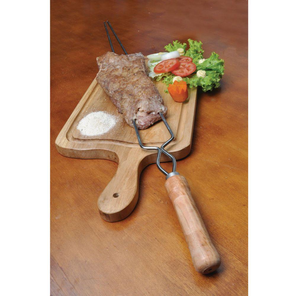 Espeto Duplo 85cm Mor Churrasco Aço Cromado Cabo Madeira