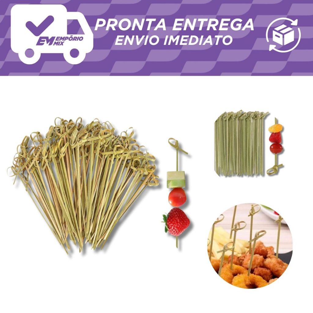 | Espetos De Bambu 9cm Com Nó Decorativo Festa Aperitivo 100 Unidades este produto | R$ 24,90 | — | 5.0/5 | 55 |
