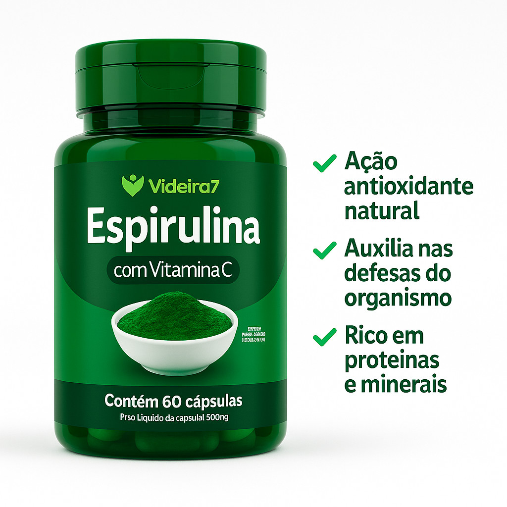Espirulina com Vitamina C 500mg - 60 CÁPSULAS