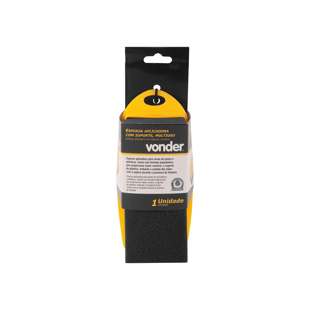 Esponja Aplicadora Pneu Pretinho Carro Moto Vonder 63.64.012.042 A esponja aplicadora Vonder conta com formato ergonômico, que proporciona maior conforto, e suporte de plástico, evitando o contato das mãos com a sujeira durante o processo de limpeza. É indicada para aplicação em áreas de pneus e plásticos, especialmente aplicação de pretinho nos pneus. Atenção! O produto não risca a superfície, mas pode reter resíduos que riscam. Certifique-se de que a esponja esteja limpa e livre de resíduos antes de usá-la. CódigoModelo: 63.64.012.042 Marca: Vonder Especificação Técnica Material da Base: Polipropileno Material da Esponja: EVA Dimensões do Produto (C x L x E): 120 x 42 x 65mm Cor: Preto e Amarelo Peso: 0,100Kg Imagens meramente ilustrativas. Todas as informações divulgadas são de responsabilidade do fabricantefornecedor.