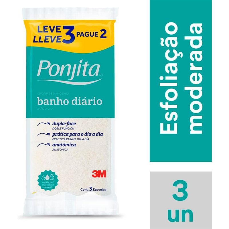 Ponjita 3M - Esponja de Banho para limpeza, relaxamento, frescor e bem-estar!A Esponja de Banho Diário 3M Ponjita mantém sua pele sempre saudável e bem cuidada. Sua face colorida limpa suavemente, enquanto a fibra branca massageia e tonifica a pele, ativando a circulação, abrindo os poros e eliminando as impurezas da pele. Benefícios:- Conforto: acaricia a sua pele, proporcionando sua higiene com mais prazer para seu banho. - Esfoliação Moderada: a esponja é dupla-face, ideal para banhos diários e tem dupla ação - limpeza profunda e limpeza suave. Modo de Usar:Aplique sabonete, de preferência, líquido, na esponja úmida até fazer espuma. Esfregue-a pelo corpo e enxágue. Lave e seque adequadamente a esponja para prevenir o crescimento bacteriano. Posso usar todos os dias bucha para banho?Não é recomendado usar esponja de banho todos os dias, pois pode prejudicar a pele. Por quê? A pele tem um equilíbrio natural de gordura e bactérias que a protegem de fungos, micoses, eczemas e alergias. Usar esponja com força remove a camada protetora da pele, deixando-a mais sensível e ressecada. A umidade do banheiro pode fazer com que a esponja acumule fungos e bactérias, que podem causar irritações e acne. O que fazer? - Troque a esponja de banho regularmente, de acordo com o tipo de esponja e com a frequência de uso. - Evite esfregar a pele com muita força. - Evite tomar banhos muito demorados ou com água muito quente. Quais esponjas de banho são indicadas para o uso regular?Esponjas macias são adequadas para peles sensíveis, enquanto as buchas ásperas podem ser usadas por pessoas com pele mais grossa ou para uma esfoliação mais profunda. Além disso, é importante lembrar que a esponja ou bucha deve ser mantida limpa e seca após o uso para evitar o crescimento de bactérias e mofo.