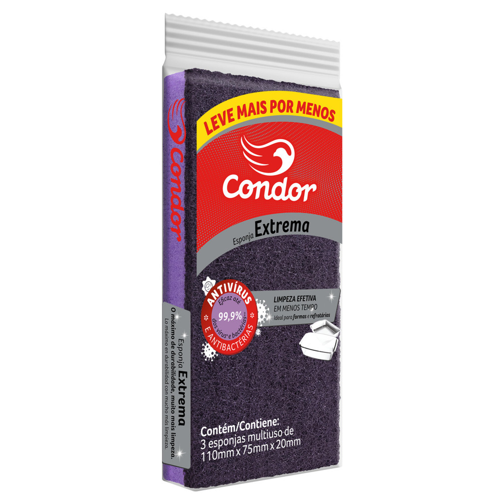 Esponja Lilás Limpeza Extrema Condor Antibac 3 Unidades Leve Mais Pague Menos
