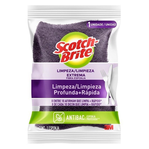 - Limpa mais rápido que as esponjas multiuso do mercado - Ideal para lavar louças com as sujeiras mais incrustadas - Limpeza mais eficiente em menos tempo - Macia e confortável para as mãos Oito entre 10 consumidores afirmam que limpa mais rápido!* A Esponja Multiuso Scotch-Brite Extrema, com seu sistema de fibras, permite limpeza mais rápida até para as sujeiras incrustradas e mais difíceis. Com ela, você terá muito mais tempo livre para fazer aquilo que mais gosta.